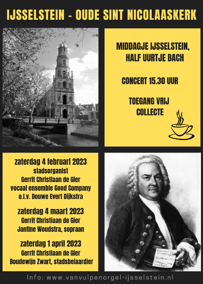 "Een middagje IJsselstein, een halfuurtje Bach" door organist Gerrit Christiaan de Gier, stadsorganist van IJsselstein.